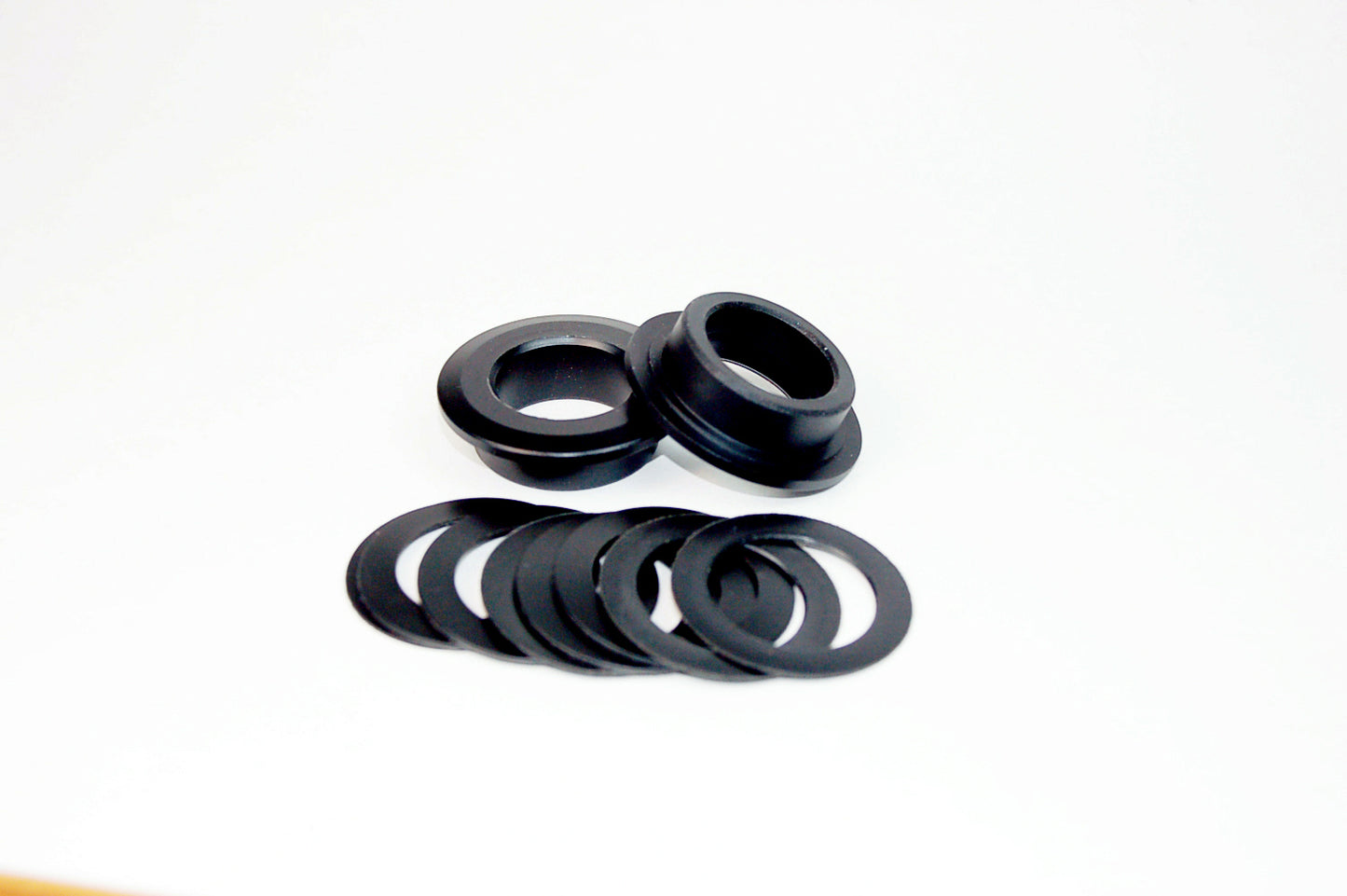 For adapting Shimano cranks to 386EVO-standard frames. Simply tap the adapters into the 6806 bearing in the BB shell or cups, then install the cranks using the included spacers to adjust chainline, or to take up any side-to-side movement in the crank.