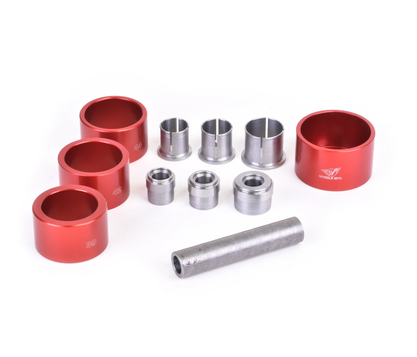 Bearing extractors set for pushing out 22mm, 24mm and 30mm ID sealed bearings from bottom bracket cups. Compatible with our 1/2" threaded press rod and handles (PRESS-7 and PRESS-7-PRO).